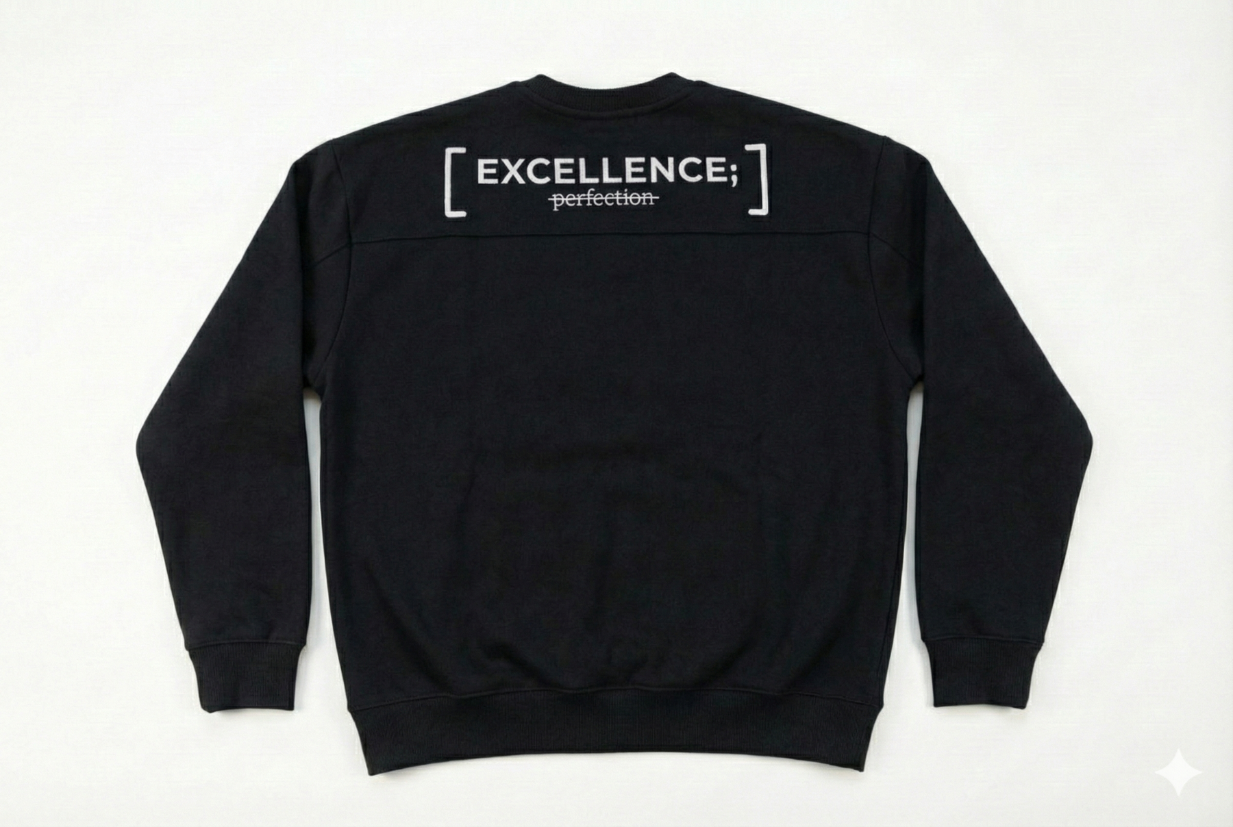 • Back graphic: “Excellence; perfection” with perfection crossed out