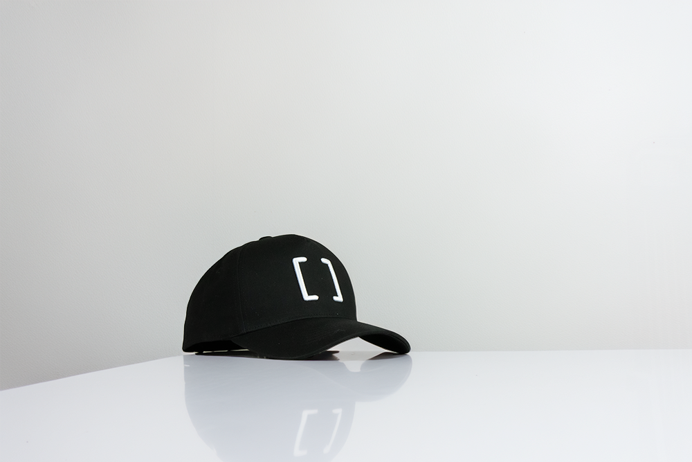 • Embroidered [ ] brackets logo – minimal, iconic